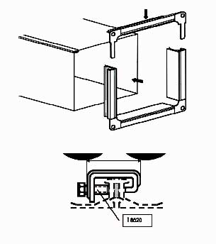 СИСТЕМА 20. При размере одной из сторон воздуховода 500 мм и меньше или полупериметре менее 1 000 мм используется профиль высотой 20 мм в комплекте с уголками 65 х 65 мм для малых сечений и 95 х 95 мм для средних сечений воздуховодов.