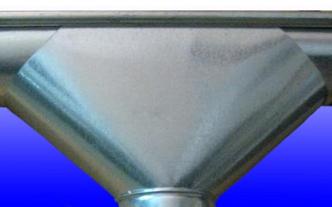 Обращаем Ваше внимание, что использование такого тройника с закругленными, плавными врезками (не типовой элемент) позволяет отказаться от дополнительных переходов с сечения на сечение, необходимых при обычном тройнике, а также улучшает гидравлические и акустические параметры сети.