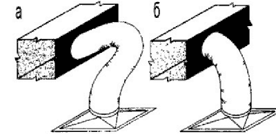 На гибкие воздуховоды опытный проектант всегда даст поправку на уменьшение скорости "на монтаж", т. к. чем выше скорость тем выше потери давления системы. Крайне негативно на работу систем вентиляции влияют складки при монтаже, воздуховод должен быть натянут (а – не натянут, большие потери давления; б – натянут).