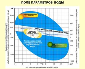 А благоприятная для жизни вода должна, желательно, иметь и такие параметры, как то: кислотность рН~9,5, рХ ~-200 мВ, содержание дейтерия меньше 1:6800, отсутствие ядовитого хлора, соотношение параводы к ортоводе - как в талой воде (75%/25%); и др.