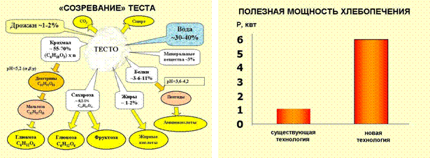 - производительности процесса на ~80 % (M2 ~1,8М1, где М – масса выпекаемого хлеба); припека – на 1/3; полезной мощности хлебопечения ~ 6-кратное: