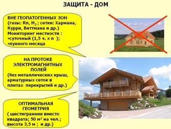 В древности все храмы и культовые здания строились на "хороших" местах, имеющих пониженное значение естественного электромагнитного фона, внутри таких зданий размер помещений соответствовал ячейкам энергетической сети, чтобы повышенное излучение попадало на перегородки. Высота культовых сооружений соответствовала глубине залегания водных потоков под сооружением, чтобы помещение для прихожан имело минимум естественного электромагнитного фона, т. е. находилось в узловой точке волны от макушки сооружения до энергетического потока под землей.