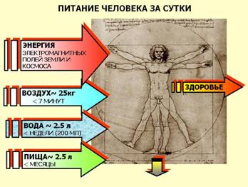 Если вспомнить, что без пищи обычный человек может прожить очень долго, без воды – неделю, а без воздуха не более 7 минут, становится очевидным, на сколько значительнее влияет на организм режим дыхания, чем режим питания.