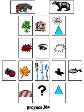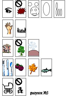 Для совершенствования связности описаний проводится обучение детей употреблению в описании местоименной связи. Логопед обращает внимание детей, что в рассказе слово «медведь» повторяется очень часто. В готовую модель описания медведя вводится значок «запрещения слова» (рисунок№3). Он будет сигнализировать, замени слово «медведь» на маленькое слово. Дети описывают медведя по уточненной модели.