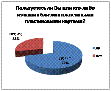 72% опрошенных ответили, что их близкие и они сами пользуются платежными пластиковыми картами.