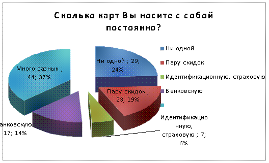 33% опрошенных ответили, что не носят с собой ни одной карты постоянно.