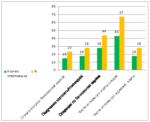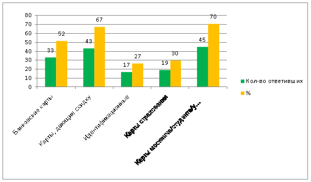 Не удивительно, что учащимся больше удобны в использовании карты, дающие скидку (67%).