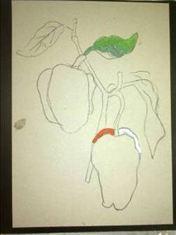 11. После высыхания нанести на аппликацию необходимые акцентные линии ( для более яркого зрительного восприятия изображения), тонкой кисточко краской «гуашь» или «акрил». (Приложение рис. 6 и 7)