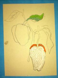 Оборудование: лист картона, копировальная бумага, пластиковая палочка для работы с пластилином, карандаш, кисточка для клея №1, клей ПВА супер, краски гуашь или акрил, кисточка для краски (белка, колонок №1,2), крашенная манка 5-6 цветов.