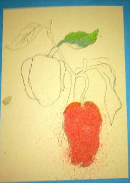 Прочитав в журнале «Ручная работа» ( №14 (66), июль 2008 г.) статью о том, что можно выполнить аппликацию из соли и речного или морского песка, подумала: «А, почему бы не попробовать использовать манную крупу?». Манная крупа напоминает по своей структуре песок, но работать с ней проще, т. к. она легче по весу, окрашивание не занимает много времени, крупа быстро сохнет и в изделии имеет более яркий вид. Выполнение аппликации из манки доступно для детей младшего школьного возраста.