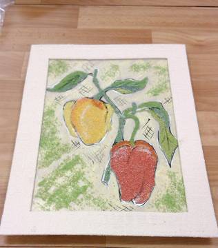 9. Следующий контрастный слой манки в нужных местах по эскизу можно наносить после полного высыхания первого нанесённого слоя;