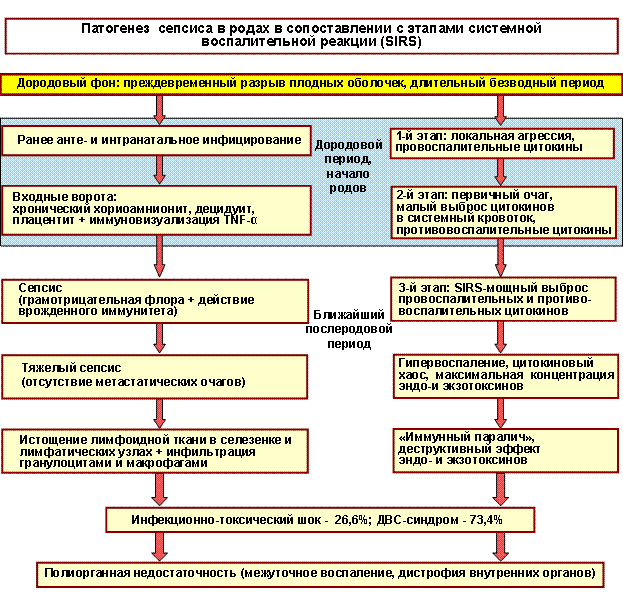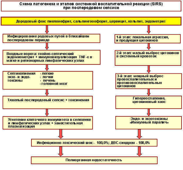Рис. 4. Схема патогенеза и этапов SIRS при послеродовом сепсисе.
