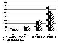 Как показано на рис. 4-Б, доля оседлых и перелетных видов на Чукотском нагорье заметно отличается от поселений южных районов Сибири.