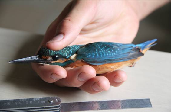 Рис. 2.4. Прижизненная обработка зимородка перед кольцеванием.