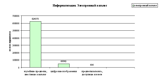 В 2005 году семь музеев области, внедрив автоматизированные информационные системы, начали работу над составлением электронного каталога и созданием информационно-справочных систем: Музей истории камнерезного и ювелирного искусства, Ирбитский государственный музей изобразительных искусств, Нижнетагильский музей-заповедник «Горнозаводской Урал», Нижнетагильский музей изобразительных искусств, Екатеринбургский музей изобразительных искусств, Новоуральский исторический музей, Музейно-выставочный комплекс г. Лесного. Всего в электронный каталог было занесено ими 333222 записи, или 24 % от основного фонда области. В 2006 г. уже 12 музеев области подключились к этой работе. К концу года в электронном каталоге было сделано записи, в 2007 г.: – в электронный каталог области было занесено записи, в 2008 г. – предметов, в 2009 г. – предметов (33,5% от всего фонда), в 2011 г. – 624 ,8%). В 2011 г. еще 4 музея приобрели автоматизированные системы учёта музейных фондов.