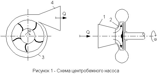 1 - подвод ; 2 - рабочее колесо ; 3 - отвод ; 4 - диффузор