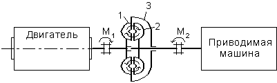 1 - ведущая шестерня 2 - ведомая шестерня 3 - корпус |