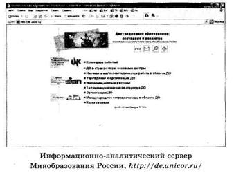 Наиболее широкая часть ДО-ресурсов принадлежит структурам государственного управления образованием. Вот пример (см. также примеры на с. 24—26):