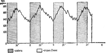 Рис. 2. Типичный пример динамики ЧСС при выполнении упражнений анаэробного алактатного воздействия