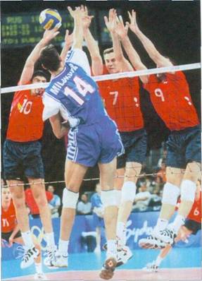 Блокирование. В основу качества группового блокирования должно быть положено индивидуальное мастерство игроков. Необходимо быть готовыми к блокированию нападающих ударов с различных по высоте и скорости передач. В клубных командах надо больше уделять внимания индивидуальному блокированию.