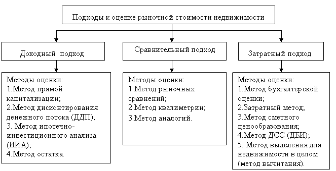 2. Определение сущности понятий “виды оценки”, ”подход к оценке” и ”метод оценки”; классификация подходов к оценке рыночной стоимости объектов недвижимости;