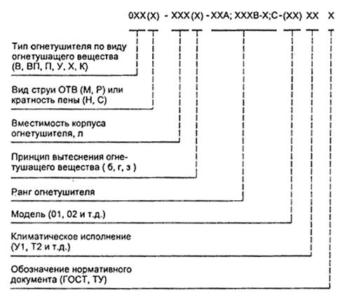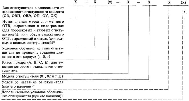 Переносные огнетушители в соответствии с ГОСТ Р должны иметь следующую структуру обозначения: