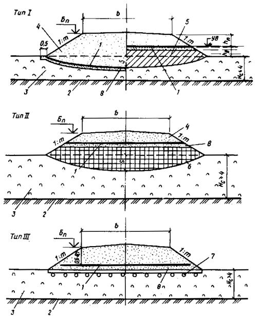тип III применяется на болотах II и III типа, сложенных сильносжимаемыми слаборазложившимися торфами.