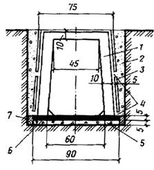 2.209. Рамные лотки собираются из готовых рам, закладных плит и покрытий, а также безраспорных секций, изготавливаемых из железобетона (рис. 53).