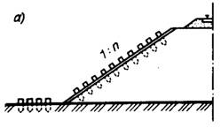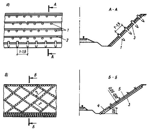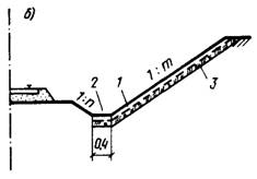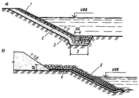 Рис. 71. Конструкции защиты откосов от размыва водой при периодическом их затоплении