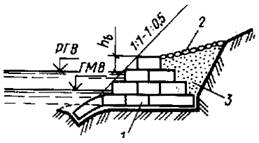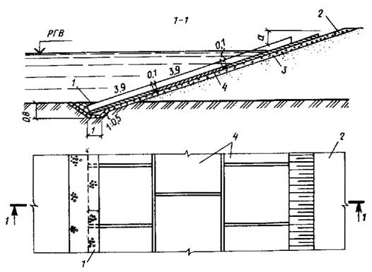 Рис. 72. Схема конструкции откоса для защиты от размыва при постоянном затоплении
