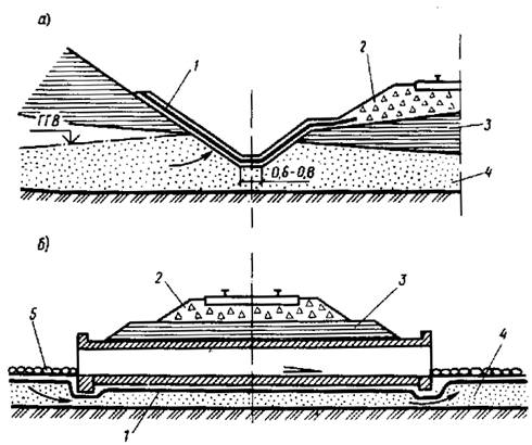 2.229. При залегании горизонта грунтовых вод на глубинах до 2 м перехватывать и отводить их следует открытыми лотками и канавами, на участках с круглогодичным потоком грунтовых вод - закрытыми лотками. На участках с размываемыми грунтами необходимо предусматривать обратный фильтр за стенками лотков.