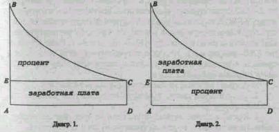 При другом способе формулировки закона (диаграмма 2) мы получаем уже процент в качестве величины, положительно определенной законом предельной производительности, а заработная плата теперь излишек, родственный ренте. Вместе взятые, эти величины образуют весь статический доход общества.