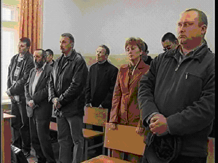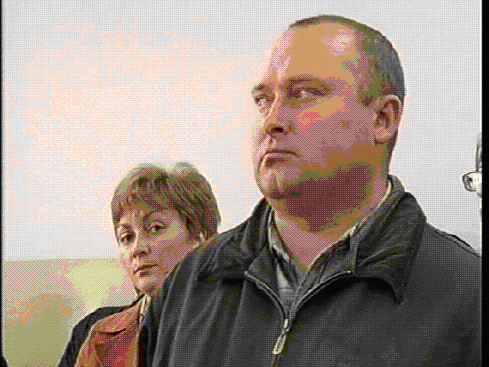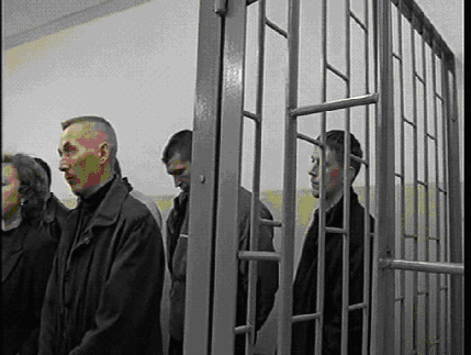 во время оглашения приговора. Сзади – его жена.