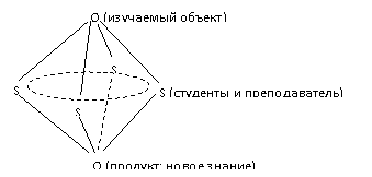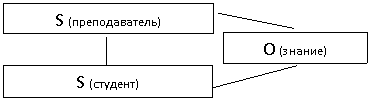 В основе традиционной системы образования лежит классическая «субъект-объектная» формула познания мира, в которой субъектами выступают учитель и ученик (преподаватель и студент), а объектом – знания, являющиеся конечной целью обучения. Взаимодействия в этой системе можно представить в виде формулы: