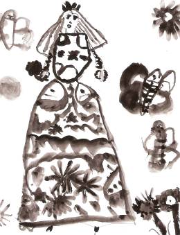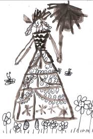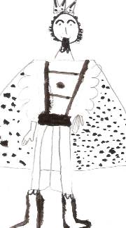 Уточнение формы изображенных предметов – туловище (трапеция) ссужается к линии талии, у королев нижняя часть туловища – длинное платье (трапеция) расширяется книзу, у короля внизу короткие штанишки-панталоны, чулочки и туфли с пряжками. Голова нарисована овалом, шея (прямоугольник) уже головы, но не слишком тонкая. В руках