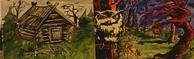 Вступительная беседа. Звучит таинственная музыка, на доске находятся рисунки педагога с изображением дома Бабы яги в лесу.