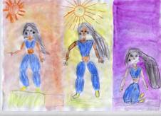 Методика проведения: Детям предлагается создать кадры к мультфильму. Педагог показывает карточки – заготовки и объясняет, как художники – мультипликаторы создают впечатление движения рисованных мультфильмов. Объясняет зависимость движения частей тела от строения человека (рисование движения - это смена положения форм с соблюдением пропорций, относительно друг друга). Показывает рисунки детей, чтобы было понятно, что примерно должно получиться. Дети по желанию выбирают изображение человека – героя мультфильма, или сказочного животного – героя мультфильма. Педагог обращает внимание, что при выполнении всех кадров герой должен быть одет в одну одежду, и действовать одним предметом, так как он только двигается, иначе получиться комикс с переодеваниями.