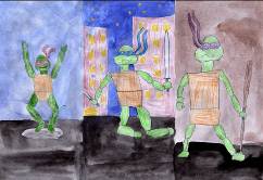 Самостоятельная работа. Следить за правильностью работы гуашью, как «как сметанкой», тогда будет краска быстрее высыхать, и не будут вливаться. Обращать внимание на подбор цвета, для передачи праздника и веселого настроения.