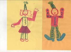 Программное содержание: Учить детей задумывать несложную композицию с фигурой человека. Закреплять умение рисовать красками человека в движении, цветом передавать его настроение, необычный яркий костюм. Совершенствовать умение рисовать гуашью. Развивать цветовое восприятие; умение рисовать фигуру, состоящую из простых форм (овал, круг, прямоугольник)