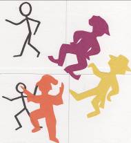Цель: Учить анализировать строение фигуры человека и её изменений при движении. Упражнять в рисовании движения человека (силуэтом или геометрическими формами)