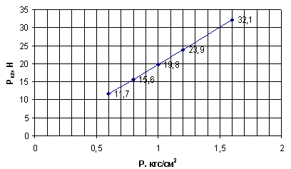 Зависимость усилия для открытия клапана регулятора от давления воды в сети изображена на рис. 14.