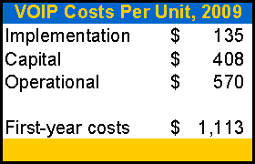 Рис. 4: Средняя стоимость VOIP в пересчете на один терминал, 2009 г.