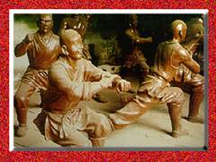 Первый император династии Цин Кан Си долго не мог покончить с повстанческим движением на западных границах. Тогда он обратился к шаолиньским монахам в провинции Фуцзянь с призывом помочь навести порядок. Менее чем за три месяца 129 монахов во главе с Чен Куан-Туном разгромили повстанцев, не потеряв при этом ни одного человека из своих рядов. Отказавшись от наград, монахи вернулись в монастырь к своим обычным занятиям. Однако император, боясь иметь такую грозную силу в своем государстве, приказал разрушить монастырь и казнить Чен Куан-Туня. Первое нападение было отбито, но после того, как маньчжуры двинули огромную армию, им удалось захватить монастырь и сравнять его с землей. Были уничтожены все его обитатели за исключением пяти монахов, которым удалось скрыться. Создав на юге каждый свое направление шаолиньского ушу, они положили начало разветвленной системе стилей и вошли в историю под именем « Пяти предков». Их считают также основателями тайного общества «Триады», лозунгом которого стало: « Уничтожить Цинов, восстановить Минов».