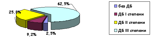 Рис. 1. Распределение больных по степени тяжести дисбиоза толстой кишки