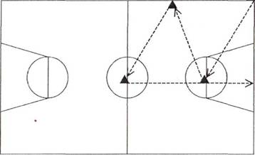 Игрок находится за лицевой линией. По сигналу арбитра испытуемый перемещается спиной в защитной стойке, после каждого ориентира изменяет направление. От центральной линии выполняет рывок лицом вперед к лицевой линии на исходную позицию. Фиксируется общее время (с). Для всех групп одинаковое задание.