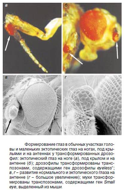 7. Трансгены, экспрессирующиеся желательным образом, в нужных клетках в нужное время. Ограничено лишь существованием соответствующих энхансеров у дрозофилы в норме. Вместо того, чтобы в случае исследования каждого нового гена трансформировать им дрозофил, получать случайным образом встроенные трансгены и отбирать из них те, которые встроились под нужным энхансером, применяют бинарную систему – коллекцию однотипных встроек под разными энхансерами, оказывающими на них cis-влияние, и коллекцию встроек разных генов, которая постоянно пополняется. Дело осталось за малым – функционально связать те и другие. Для этого в дрозофилу фактически встраивается сразу целое звено генной сети. Встройки под разными энхансерами содержат дрожжевой ген Gal4, который кодирует белок, активирующий транскрипцию у дрожжей. Никакого фенотипа экспрессия этого гена у дрозофилы не имеет. Однако он способен активировать дрожжевой промотор UAS. Поэтому в трансгенах второго типа разные гены поставлены под этот самый дрожжевой промотор UAS. В отсутствии белка GAL4 он неактивен, поэтому линии мух из второй коллекции сами по себе также не имеют своего особого фенотипа. Однако если скрестить линию первого типа с линией второго типа, в геноме гибридной мухи будет присутствовать и дрожжевой ген Gal4, встроившийся под cis-регуляцию того или иного энхансера, и trans-регулиремый его продуктом промотор UAS в связке с изучаемым геном. Таким образом, cis-сигнал из одного родительского генома посредством одной из встроек передается дополнительным trans-сигналом в другую встройку, находящуюся во втором родительском геноме. Имея две такие коллекции линий, можно поставить любой ген из второй коллекции под регуляцию любым энхансером из первой коллекции. И тем самым изучать, что будет происходить с мухой вследствие экспрессии трансгена, регулируемой тем или иным образом.