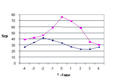 В комитет по метеоритам АН СССР [8] было сообщено о 1917 болидах. Числа S ежегодных сообщений были сгруппированы по близости года их наблюдений ТН к году максимальной солнечной активности ТСА. Обозначим через τ разность ТН - ТСА.