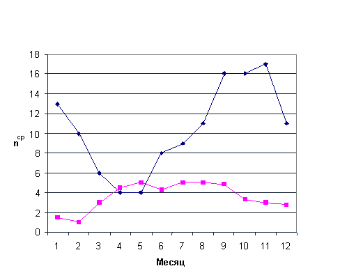 В четные циклы, в годы, близкие к ТСА, числа болидов заметно увеличены зимой. На рис.9 приведены их средние значения (кривая 1).
