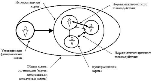 Позиционные нормы (или нормы межфункциональных взаимодействий). Наличие в компании высоких профессионалов своего дела – необходимое, но недостаточное условие эффективной деятельности компании в целом. Не менее важным является отлаженность механизма взаимодействия между сотрудниками разных отделов.