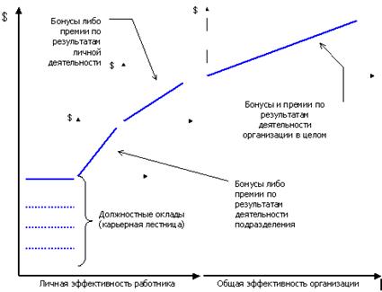Такая схема (рис.2) мотивации достаточно эффективна в силу низкого уровня жизни, и, для большинства предприятий, сохраняет свою актуальность. Тем не менее, например, на московском рынке, несмотря на внешнюю логичность и взвешенность схемы рис.2, она постепенно теряет свою эффективность.